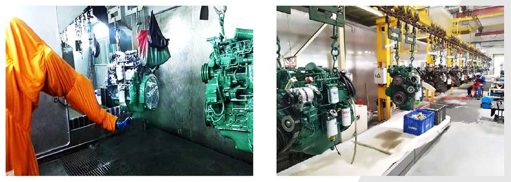 噴漆生產線集成工業(yè)機器人、在線自動識別、自動噴控、自動清洗噴頭等先進技術,實現(xiàn)了對生產線上不同規(guī)格型號的柴油機進行自動識別,自動調色配色,自動切換機器人噴涂路徑程序進行噴漆。生產線已在玉柴股份公司五個噴漆工段使用,提高了涂裝質量,實現(xiàn)了生產線柔性化生產,減少了噴涂作業(yè)和輔助人員,具有很好的智能制造應用示范效果。