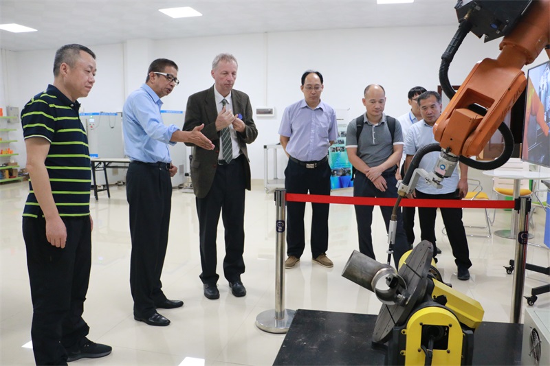 圖為匈牙利方參觀我院的工業(yè)機器人實驗室