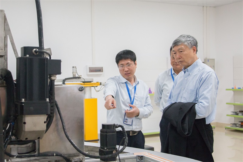隨后,在院領(lǐng)導(dǎo)的陪同下,李培根院士先后參觀了我院工業(yè)機(jī)器人實(shí)驗(yàn)室、3D金屬實(shí)驗(yàn)室、智能制造實(shí)驗(yàn)室、柔性線培訓(xùn)中心、全自動(dòng)包裝生產(chǎn)線。李培根院士非??春梦以旱娜嵝陨a(chǎn)線、全自動(dòng)包裝碼垛機(jī)器人生產(chǎn)線、高壓清洗機(jī)器人、3D打印等產(chǎn)品,并對(duì)其市場(chǎng)抱有充分信心。他指出:希望我院能開闊視野,推廣智能制造在跨行跨界的研發(fā)及應(yīng)用,不斷凝練核心技術(shù),成為具有核心競(jìng)爭(zhēng)力的創(chuàng)新型企業(yè)。
