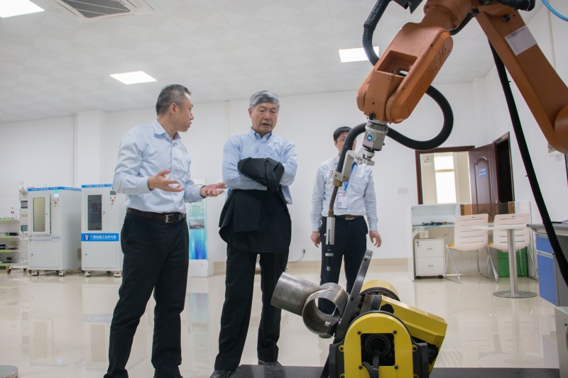 王吉才院長(zhǎng)向李培根院士詳細(xì)介紹了我院的情況,重點(diǎn)介紹了近年來我院轉(zhuǎn)型升級(jí)后在智能制造方面的技術(shù)應(yīng)用。李院士在細(xì)心傾聽我院領(lǐng)導(dǎo)的介紹后,對(duì)我院在促進(jìn)廣西智能制造創(chuàng)新發(fā)展中的作用表示充分肯定,并針對(duì)我院的科研、生產(chǎn)等工作高屋建瓴地給出了許多建設(shè)性的意見。