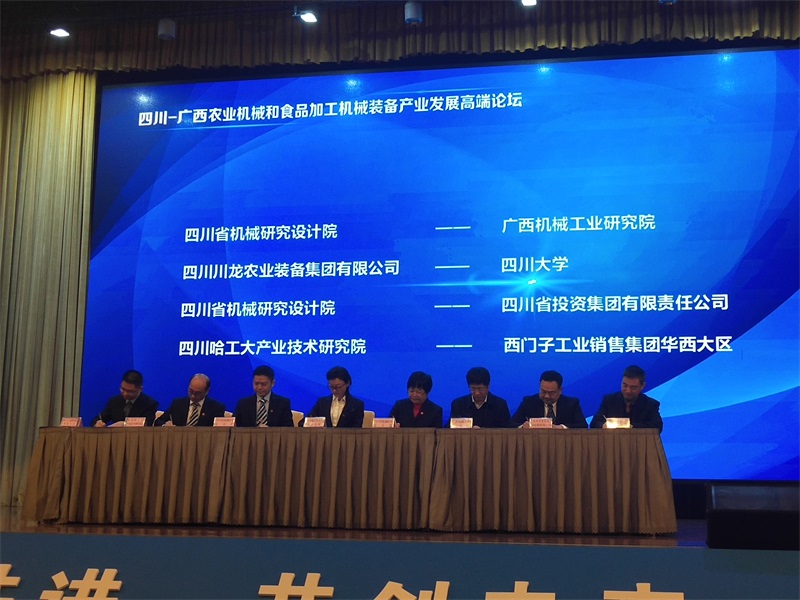 會上,我院加入四川-廣西農(nóng)業(yè)機(jī)械和食品加工機(jī)械裝備產(chǎn)業(yè)發(fā)展聯(lián)盟并與四川省機(jī)械研究設(shè)計(jì)院簽署戰(zhàn)略合作協(xié)議,達(dá)成長期戰(zhàn)略合作伙伴關(guān)系。