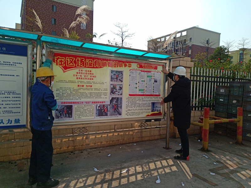 加大宣傳力度,豐富宣傳方式和內(nèi)容,營(yíng)造疫情防控的濃厚氛圍。在原宣傳櫥窗、板報(bào)專欄、標(biāo)語(yǔ)橫幅宣傳基礎(chǔ)上,增加了LED顯示屏滾動(dòng)播放重要提示、海報(bào)、掛圖、漫畫(huà)、先進(jìn)典型人物宣傳、懸掛條幅、發(fā)放承諾書(shū)、溫馨提示卡發(fā)至班組、員工等多種形式加大宣傳力度,擴(kuò)大宣傳覆蓋面。截至目前,累計(jì)懸掛宣傳條幅23條,宣傳海報(bào)35張,發(fā)放情況調(diào)查表150份,承諾書(shū)150份,溫馨提示卡80張,內(nèi)容涵蓋自治區(qū)疫情防控指揮部關(guān)于疫情防控的“八個(gè)堅(jiān)持八個(gè)嚴(yán)禁”、“十項(xiàng)措施”,柳州市政府企業(yè)復(fù)工復(fù)產(chǎn)“十大措施”等上級(jí)規(guī)定要求,以及新冠肺炎防護(hù)知識(shí)、“七步洗手法”、如何正確佩戴口罩、正確消毒等防控知識(shí)和自我防護(hù)辦法等,通過(guò)宣傳引導(dǎo),不斷增強(qiáng)全員防控意識(shí),使防控意識(shí)和防控知識(shí)入腦入心。