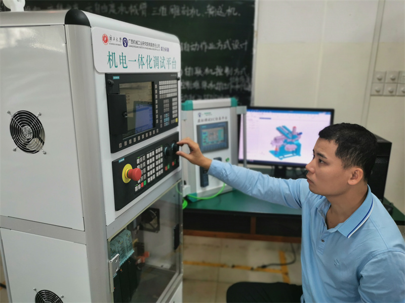 隨著《中國(guó)智造2025》的深入實(shí)施,智能制造領(lǐng)域的自動(dòng)化智能化水平都大幅提升。李修明發(fā)現(xiàn)企業(yè)都面臨一個(gè)嚴(yán)重的挑戰(zhàn)——技能型人才的缺失。通過(guò)與高校對(duì)接,展開(kāi)深入調(diào)研,他發(fā)現(xiàn)目前廣西工科院校的研究、教學(xué)工作與學(xué)生就業(yè)方向、企業(yè)需求普遍存在結(jié)構(gòu)性矛盾。一是學(xué)生的專業(yè)知識(shí)、技能訓(xùn)練與企業(yè)招聘技能需求不匹配,學(xué)生畢業(yè)后在求職和實(shí)際應(yīng)用方面存在困難;二是課程內(nèi)容設(shè)置與現(xiàn)代化制造模式脫節(jié),學(xué)校缺乏與時(shí)俱進(jìn)的信息化教學(xué)和實(shí)訓(xùn)環(huán)境。