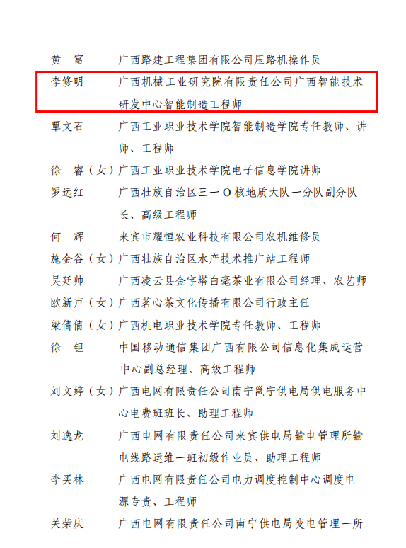習(xí)近平總書記指出:“創(chuàng)新的事業(yè)呼喚創(chuàng)新的人才?!睘橥苿?dòng)產(chǎn)業(yè)工人不斷提高技術(shù)水平,煥發(fā)創(chuàng)新創(chuàng)造活力,近日,自治區(qū)總工會(huì)公布了廣西五一勞動(dòng)獎(jiǎng)?wù)潞蛷V西工人先鋒號(hào)表彰名單,機(jī)械院梅開(kāi)二度,時(shí)隔一年再次上榜,李修明同志獲授“廣西五一勞動(dòng)獎(jiǎng)?wù)隆薄?