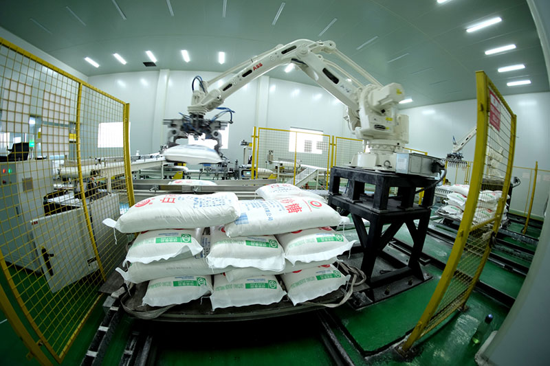我院自主研發(fā)的全自動包裝碼垛機器人生產(chǎn)線可用于制糖、食品、飼料、化肥、淀粉、化工、醫(yī)藥、納米碳酸鈣等行業(yè)粉料、顆粒物料的傳統(tǒng)套裝式可分離內(nèi)外袋自動化包裝,實現(xiàn)將內(nèi)袋封口后置入外袋,然后自動縫合外袋,包裝全密封,無針眼,屬世界首創(chuàng)。