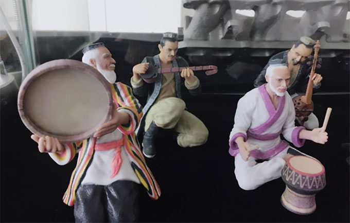 全彩 3DP(Three Dimensional Printing)三維打印粘結(jié)成型技術(shù)是將與膠水混合的三原色彩色墨水通過打印頭打印在托盤鋪設(shè)的復(fù)合砂巖材料上。完成一層打印后,托盤工作臺(tái)下降一個(gè)層高,再鋪設(shè)一層新的材料,不斷打印,不斷粘結(jié)而成。