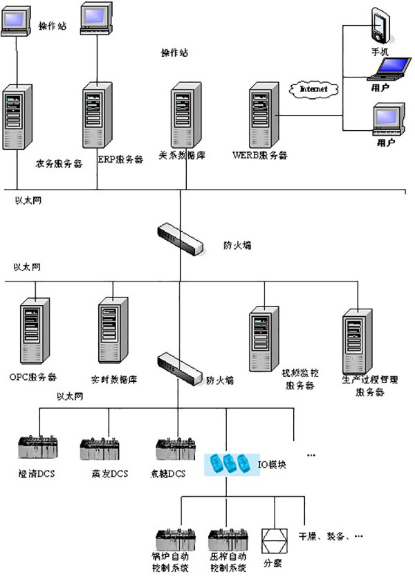 系統(tǒng)分為體系結(jié)構(gòu)ERP/MES/PCS三個層次的,MES中間層在對上的ERP層提供數(shù)據(jù)資源和接口,對下的PCS層可以靈活擴(kuò)展接入,完成生產(chǎn)過程自動化控制、生產(chǎn)過程管理、企業(yè)經(jīng)營管理信息化等目的。